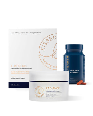 The powerful combination of these three hand-selected products will help to illuminate and plump the skin, increase elasticity and firmness, provide stronger hair & nails and reduce visible signs of ageing.