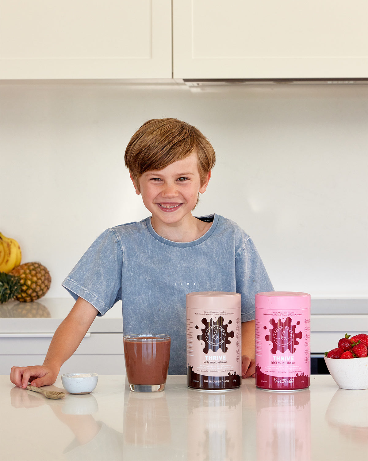 Discover the joy of wholesome nutrition with Kissed Earth's kids' vitamins. Our 'Thrive' shakes are designed to complement your child's active lifestyle and nourish their potential. With delicious flavours and a powerhouse of essential nutrients, your child gets the best start every day. It's simple, safe, and effective wellness they'll look forward to.