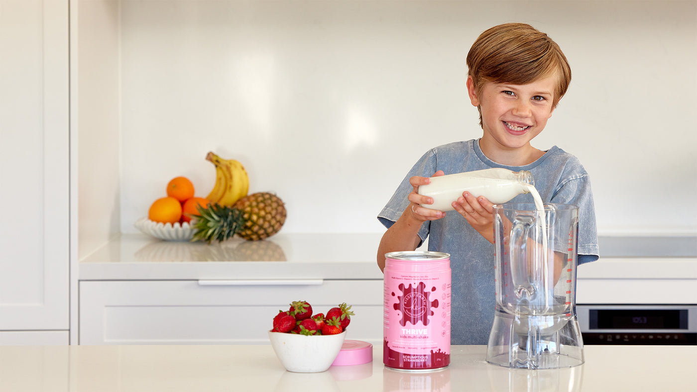 Discover the joy of wholesome nutrition with Kissed Earth's kids' vitamins. Our 'Thrive' shakes are designed to complement your child's active lifestyle and nourish their potential. With delicious flavours and a powerhouse of essential nutrients, your child gets the best start every day. It's simple, safe, and effective wellness they'll look forward to.