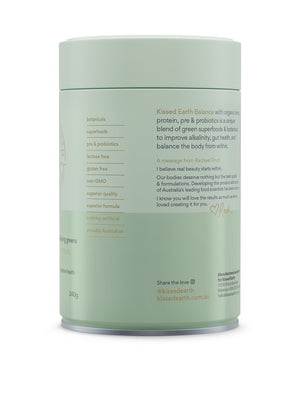 Elevate your wellness with Kissed Earth Balance daily. Our bespoke blend provides a symphony of organic super greens, pre & probiotics, hemp seed protein and cherry fruit extract, offering an abundance of vitamins and minerals. More than just a greens powder – this popular blend has been meticulously crafted with some of the best ingredients that nature has to offer in a delicious and refreshing way.