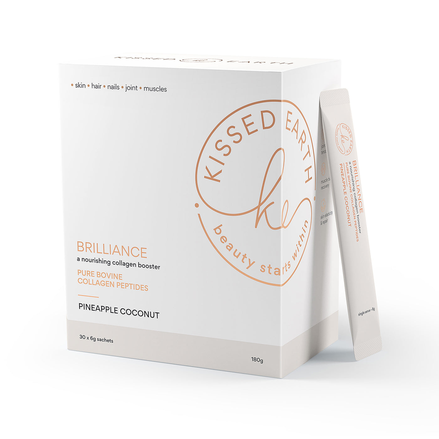 Our Kissed Earth range launched with Brilliance - still the purest bovine hydrolysed collagen peptides available in the world, along with our organic and fermented Replenish vegan protein, Balance organic super greens, and the Cleanse. Today we have 33 products under the Kissed Earth umbrella spanning across collagen, supplements, vitamins, skincare, kids, and pets - every one a labour of love and an extension of the same strict principles we set out from the beginning.