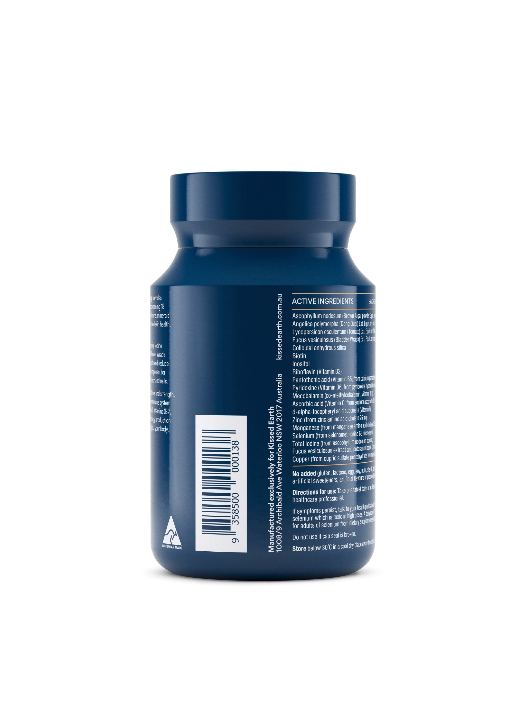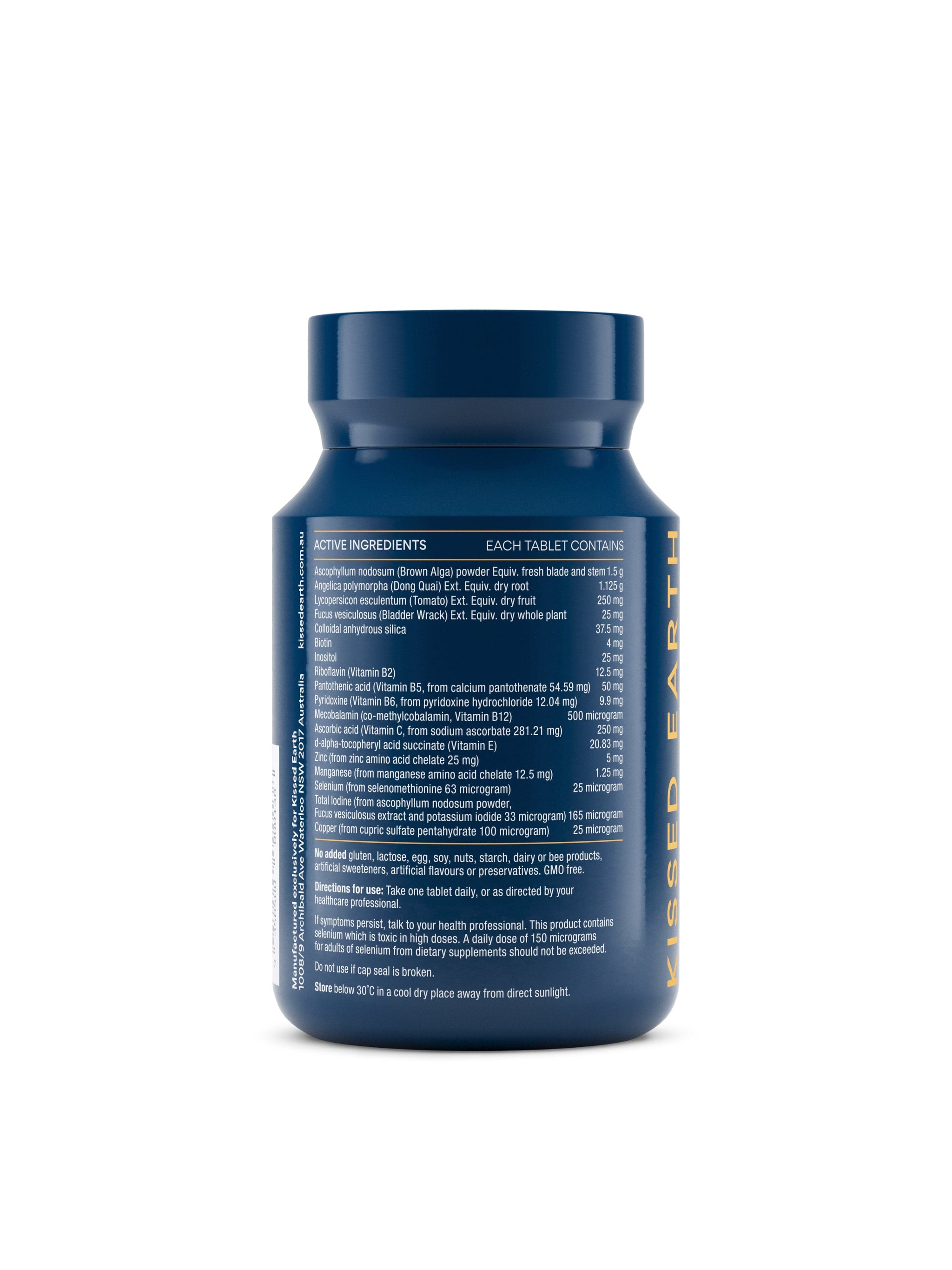• Naturally occurring Iodine sourced from Bladder Wrack and Brown Algae to improve thyroid hormone health and reduce hair loss.