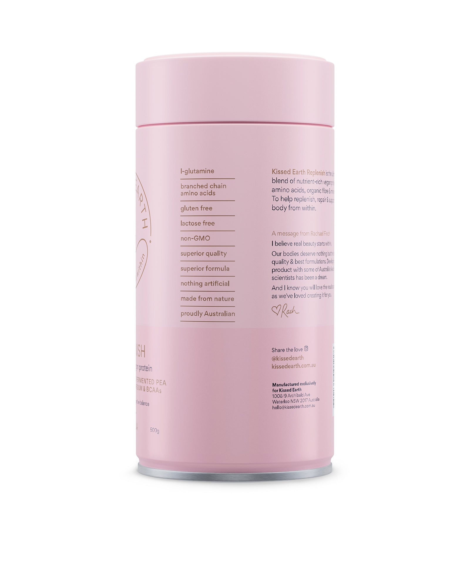 I've been using the kissed earth replenish since launch. As a personal trainer and mother I was looking for a plant based protein to help support my busy and active lifestyle. Kissed earth replenish ticks all the boxes: taste, texture and clean ingredients. I love knowing that I'm fueling and repairing my body with the best!