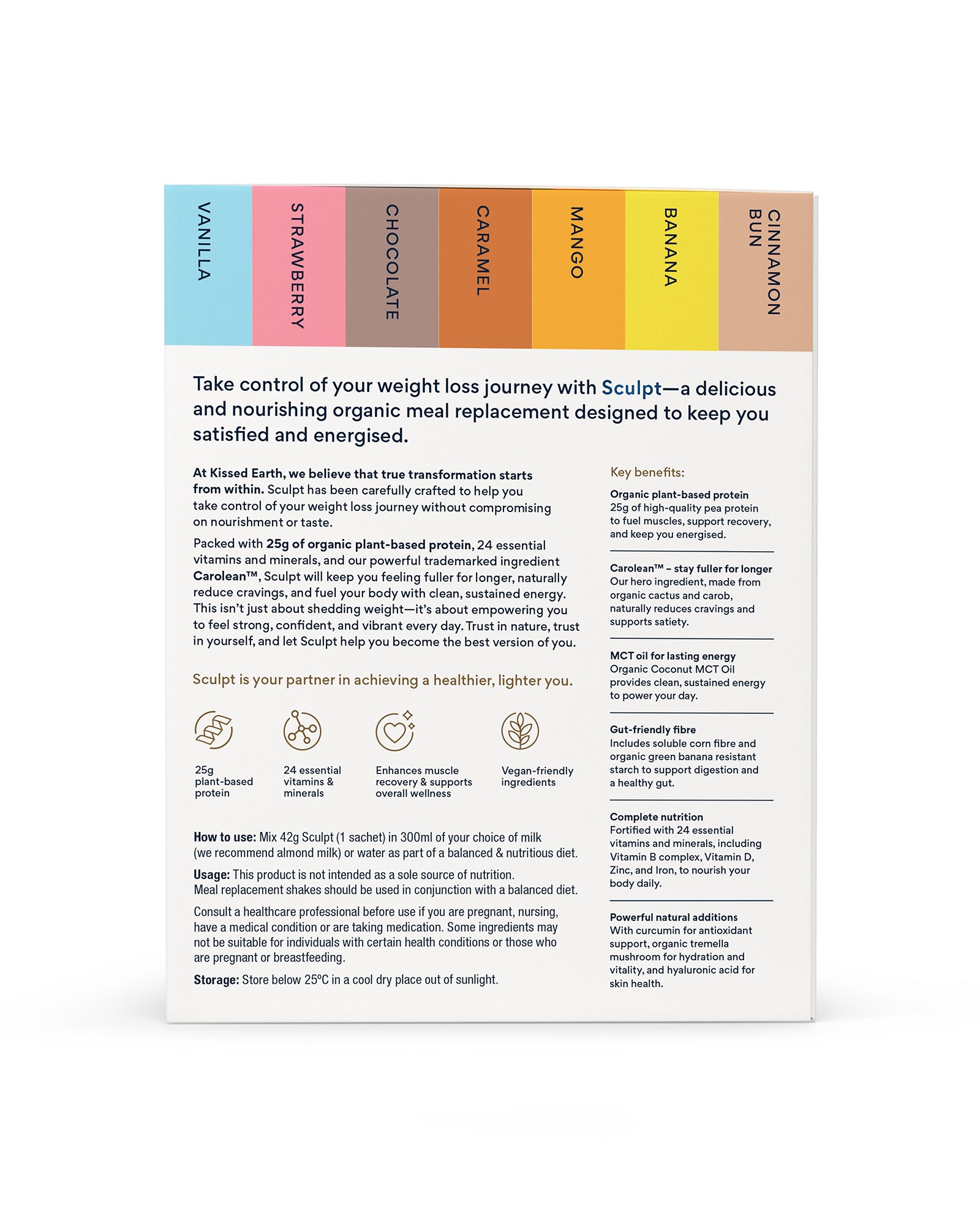 At Kissed Earth, we believe that true transformation starts from within. Sculpt has been carefully crafted to help you take control of your weight loss journey without compromising on nourishment or taste.