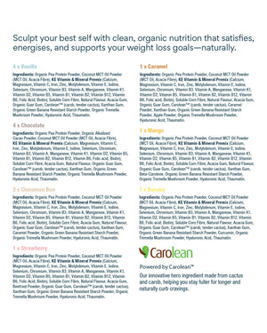 Packed with 25g of organic plant-based protein, 24 essential vitamins and minerals, and our powerful trademarked ingredient Carolean™, Sculpt will keep you feeling fuller for longer, naturally reduce cravings, and fuel your body with clean, sustained energy.